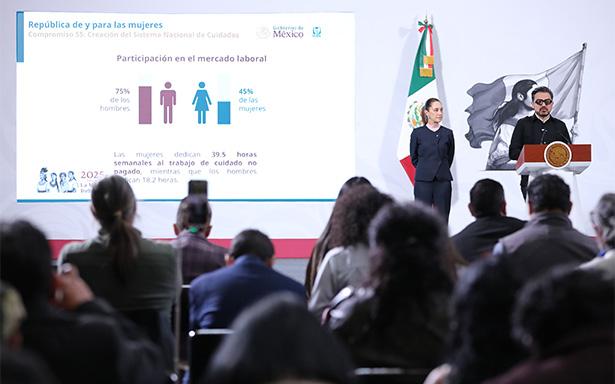 Zoé Robledo destacó que la creación del Sistema Nacional de Cuidados, compromiso número 55 de la Presidenta Claudia Sheinbaum, responde a una realidad urgente: en el país, sólo 45 de cada 100 mujeres participan en el mercado laboral, frente a 75 de cada 100 hombres. Además, ellas dedican en promedio 41.8 horas semanales al trabajo de cuidado no remunerado, mientras que los hombres dedican la mitad de este tiempo.