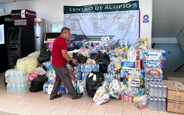 Para ello, se instalaron centros de acopio institucional en la sede delegacional y en los Hospitales Generales de Zona (HGZ) No. 1 de Zacatecas y No. 2 de Fresnillo donde se recibieron los insumos aportados por compañeras y compañeros de esos centros de trabajo y de diversos municipios de la entidad, en solidaridad con la población afectada por los fenómenos meteorológicos.